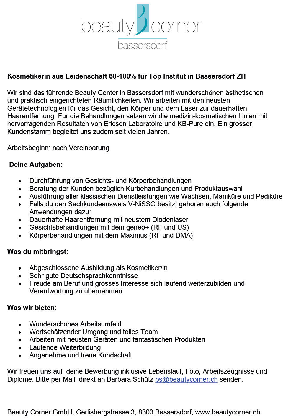 Beauty Corner GmbH | Gerlisbergstrasse 3 | 8303 Bassersdorf | E-Mail | Tel. 044 836 61 80 | AGB | Datenschutzerklärung